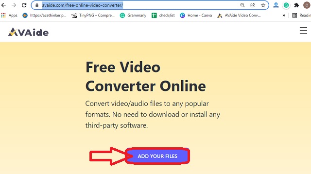 Open your browser and visit the main page of the tool. Upon reaching the page, click the ADD YOUR FILES and start acquiring the launcher.