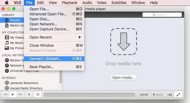 Step 1Open the downloaded VLC on your Mac. then start uploading the RMVB by clicking the File and the Convert/Stream. On the next window, hit Open Media to choose the file.