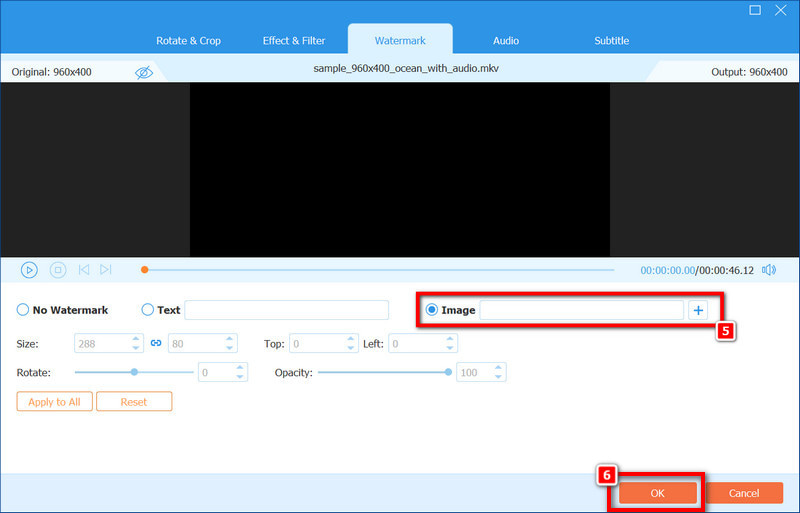 ステップ6動画や画像にウォーターマークを設定したら、プレビューで期待どおりになっているかどうかを確認します。その後、 わかった 透かしが追加されたら。