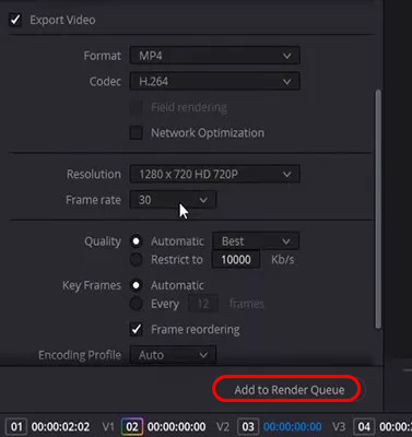 Шаг 10 После изменения других параметров, включая разрешение, Добавить в Очередь рендеринга и Рендерить все для экспорта последовательности также следует нажать. Ваше видео будет преобразовано в файл MP4 и готово к загрузке и распространению.